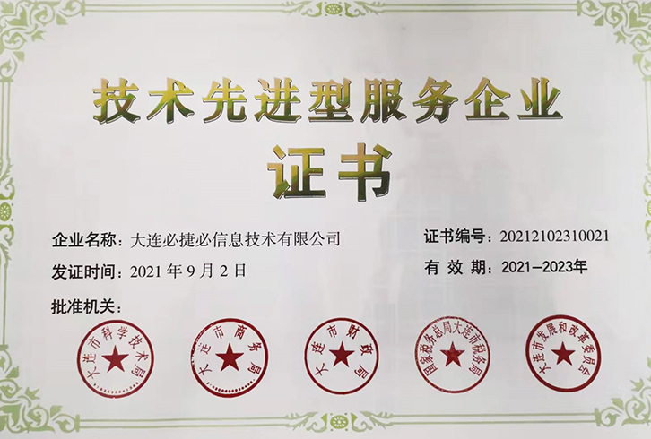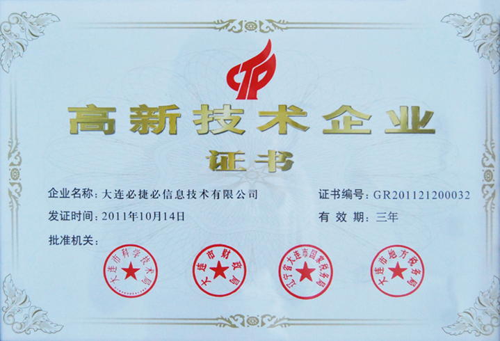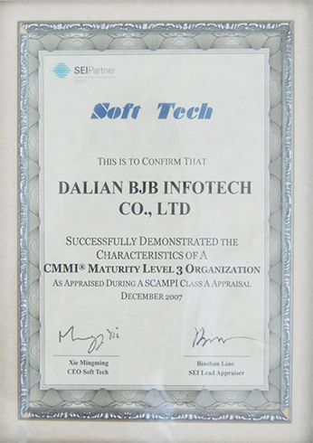 大连必捷必以“质量第一”为企业宗旨,一直致力于软件开发的过程改善和软件产品质量的提高,于2007年通过了CMMI3质量体系认证。