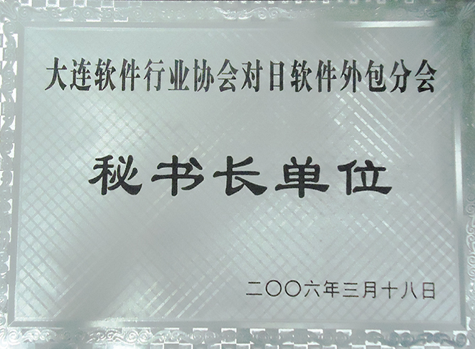 公司荣获大连软件行业协会授予公司为“理事单位”